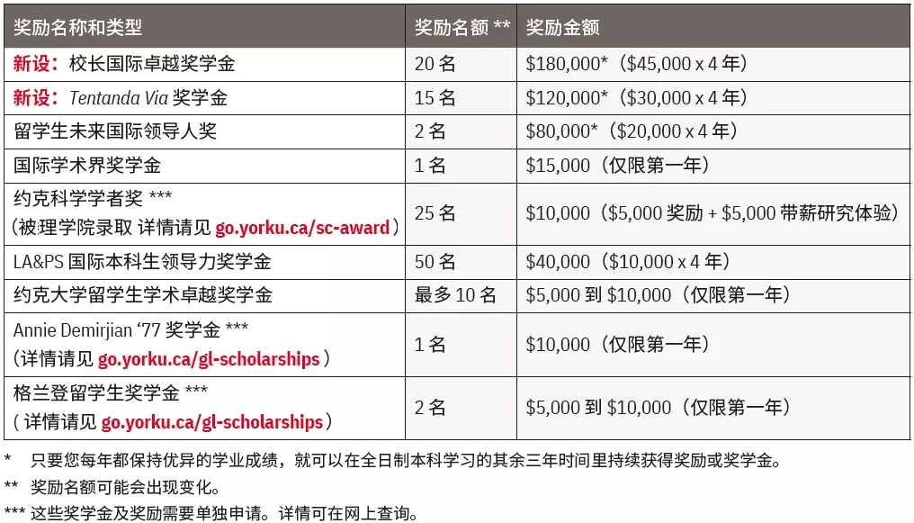 而如此优秀的约克大学其实一直以来都对优秀学子非常重视,甚至以给硕/博士阶段学生发放大量“全额奖学金”而闻名,但其实约克大学也有相当多针对本科生的各类奖项。新申请季来临,约克大学又特别为国际学生新增巨额“校长奖学金”:20个名额,优秀的你值得拥有!