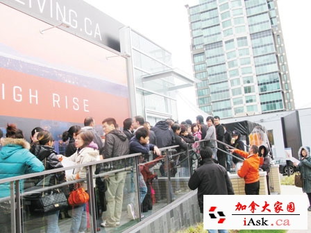 本那比铁道镇3月以来,由于好几栋高层柏文楼花相继推出,吸引了源源不断的华裔买家,成为大温柏文销售的新热点。 不久前才有数百中国买家冒零度低温,漏夜排队等待楼花开始销售而引起混乱,昨日开始销售的一个铁道镇新楼花,在地产经纪的建议下改进做法,更早接受有意愿买家打电话预约留位,但仍有已预约的买家担心买不到心水单位,执意在销售中心开门前来排队,最长排有50多人。